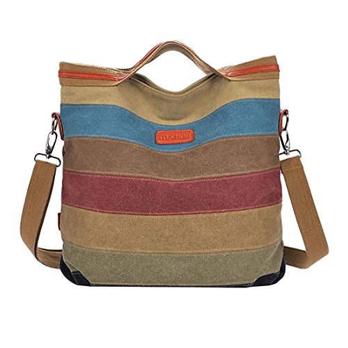 Hobos Shoulder Bags, iTECHOR Multi-Color Women's Striped Canvas Totes Hobos Handbag Shoulder Cross-body Bags Features: .Material:High density pure cotton canvas .Size:35*15*31cm/13.78*5.90*12.20in .Fashion and retro Element:Contrast Color Stripe .Structure:Main Compartment with Cell Phone Pocket, Document Pocket, Sandwich Pocket, Zipper Pocket; Back Zipper Pcoket .High top hardware, perfect stitching skill, Smooth zipper, all details showing its high-end style .Huge capacity and good organizer for Ipad, Magazine, Books, cell phone and other items .Adjustable removable shoulder and multi wearing methods fit for all good tast women .Style:handbag, crossbody, single shoulder bag .Occasions:Hanging Out, Office, Shopping, School, Party, Holiday, Travel and Outdoor, etc. .Gender:Female .Packing:PE Bag Warm Tips: 1. There may be a few smell on the bag once you got it, since it is in new condition and sealed packaged. You can put it in a ventilated place for a few hours, then the smell will fade away. 2. Color may vary slightly on actual item due to lighting effects/ environment, monitor brightness settings etc. 3. Regarding the size, please allow 1-2cm (0.4-0.8") differences due to manual measurement, thank you!