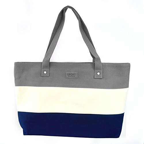 If you are looking for a product LA HAUTE Womens Fashion Stripes Canvas Tote Handbag Three-color Stitching Shoulder Bag (Color Grey) then I will show you information and reviews about this product. LA HAUTE Womens Fashion Stripes Canvas Tote Handbag Three-color Stitching Shoulder Bag (Color Grey) searched by people on the internet then not to run out of this stock. Make purchases with the click of a button 'Buy Now' if you really want to have this product. The following information and reviews about this product: